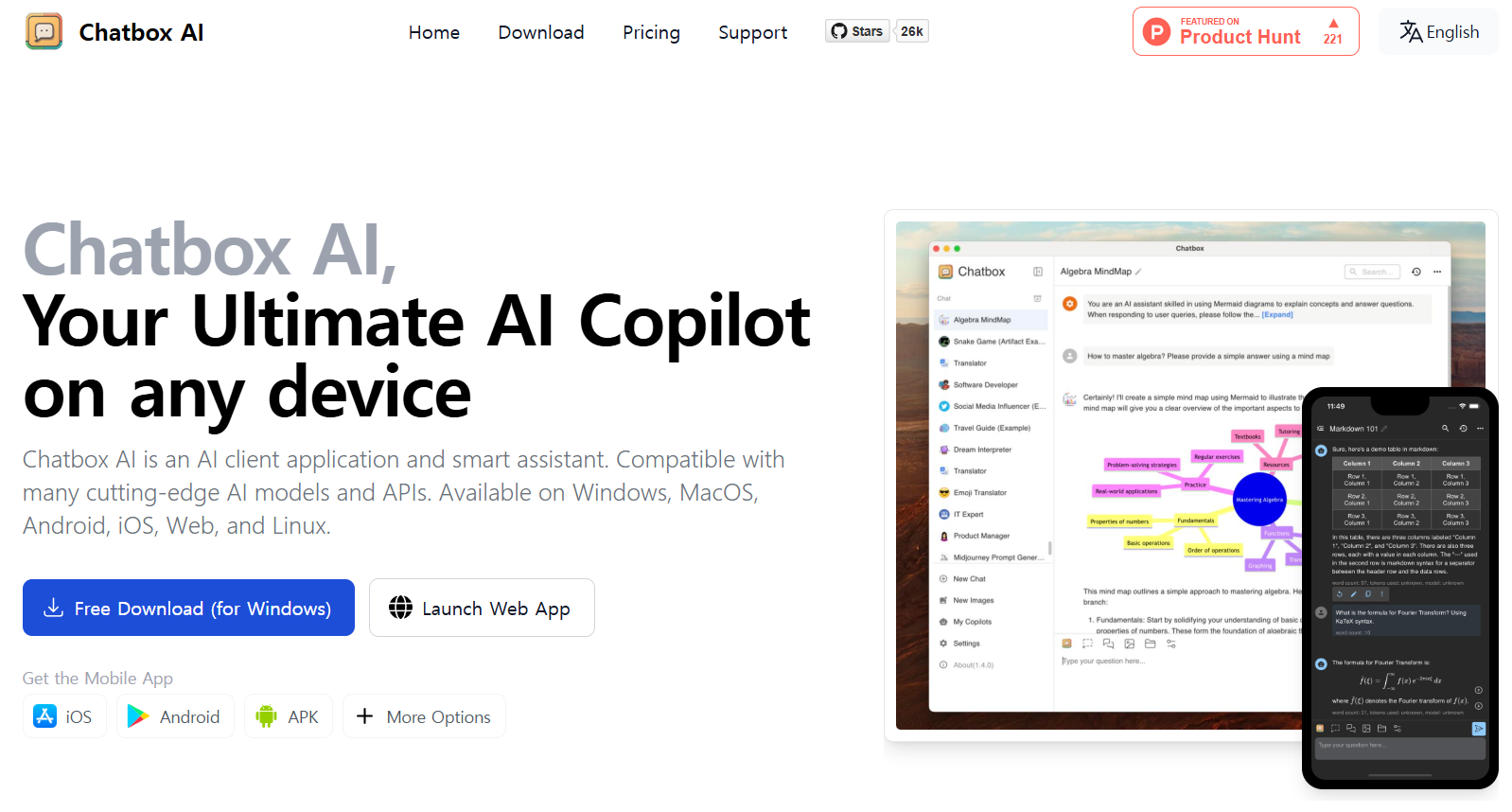Chatbox AI is an AI client application and smart assistant. Compatible with many cutting-edge AI models and APIs. Available on Windows, MacOS, Android, iOS, Web, and Linux.